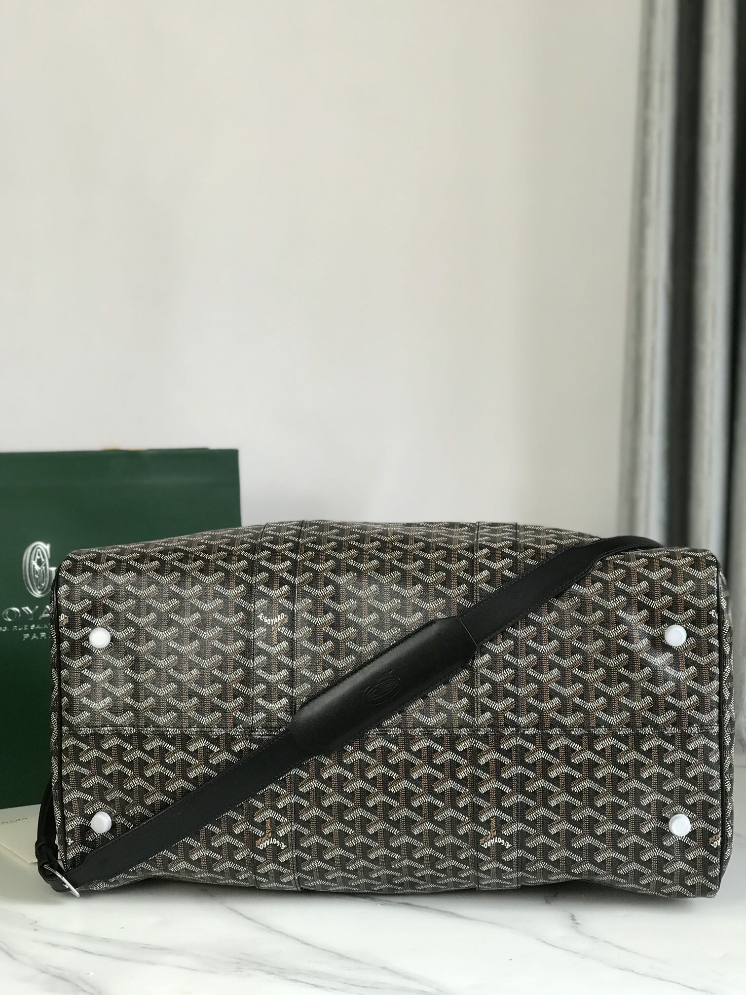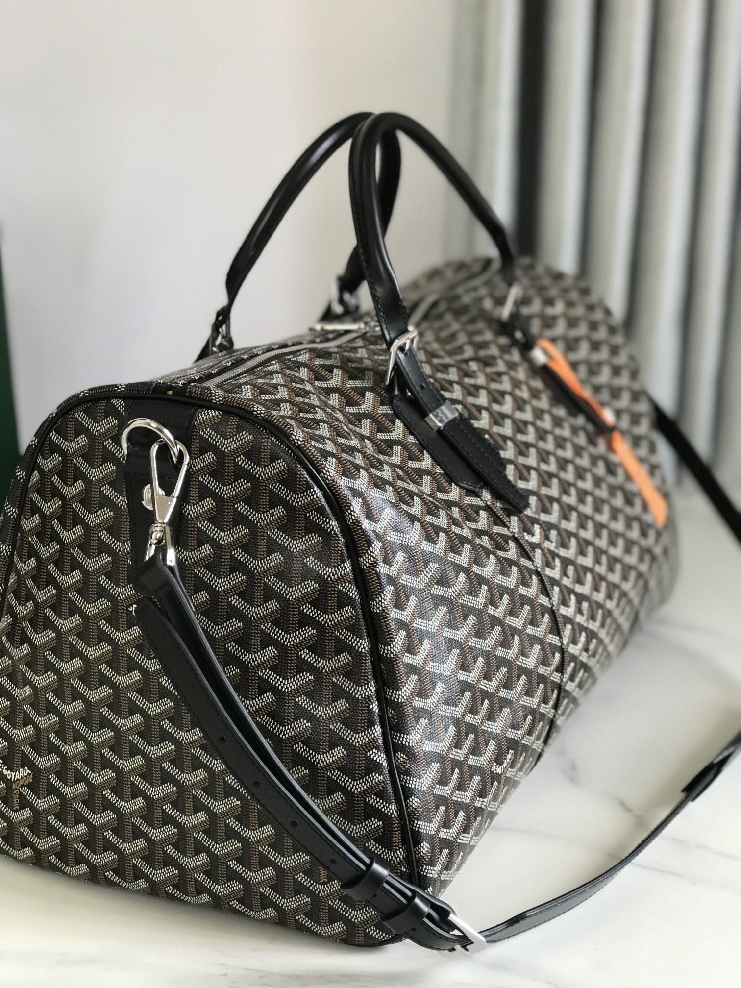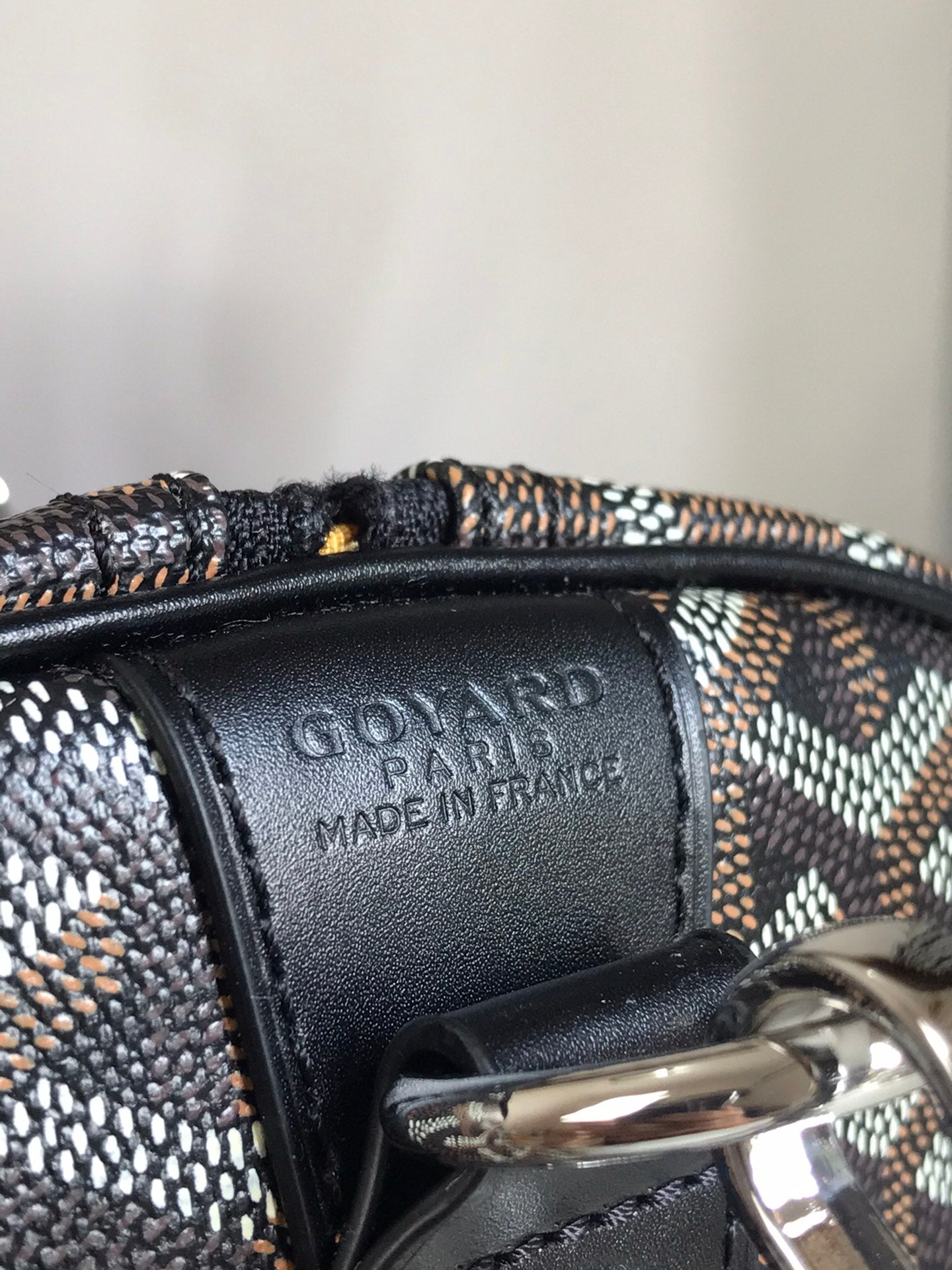 - Material: Goyardine canvas and calfskin trim