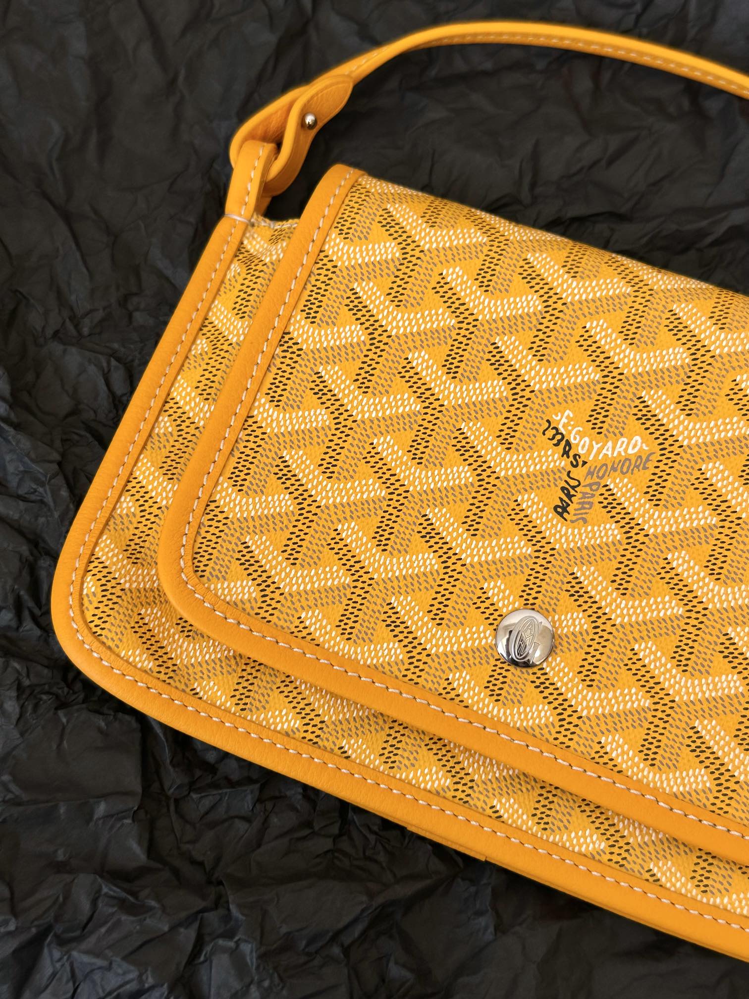 - Material: Goyardine canvas and lambskin trim