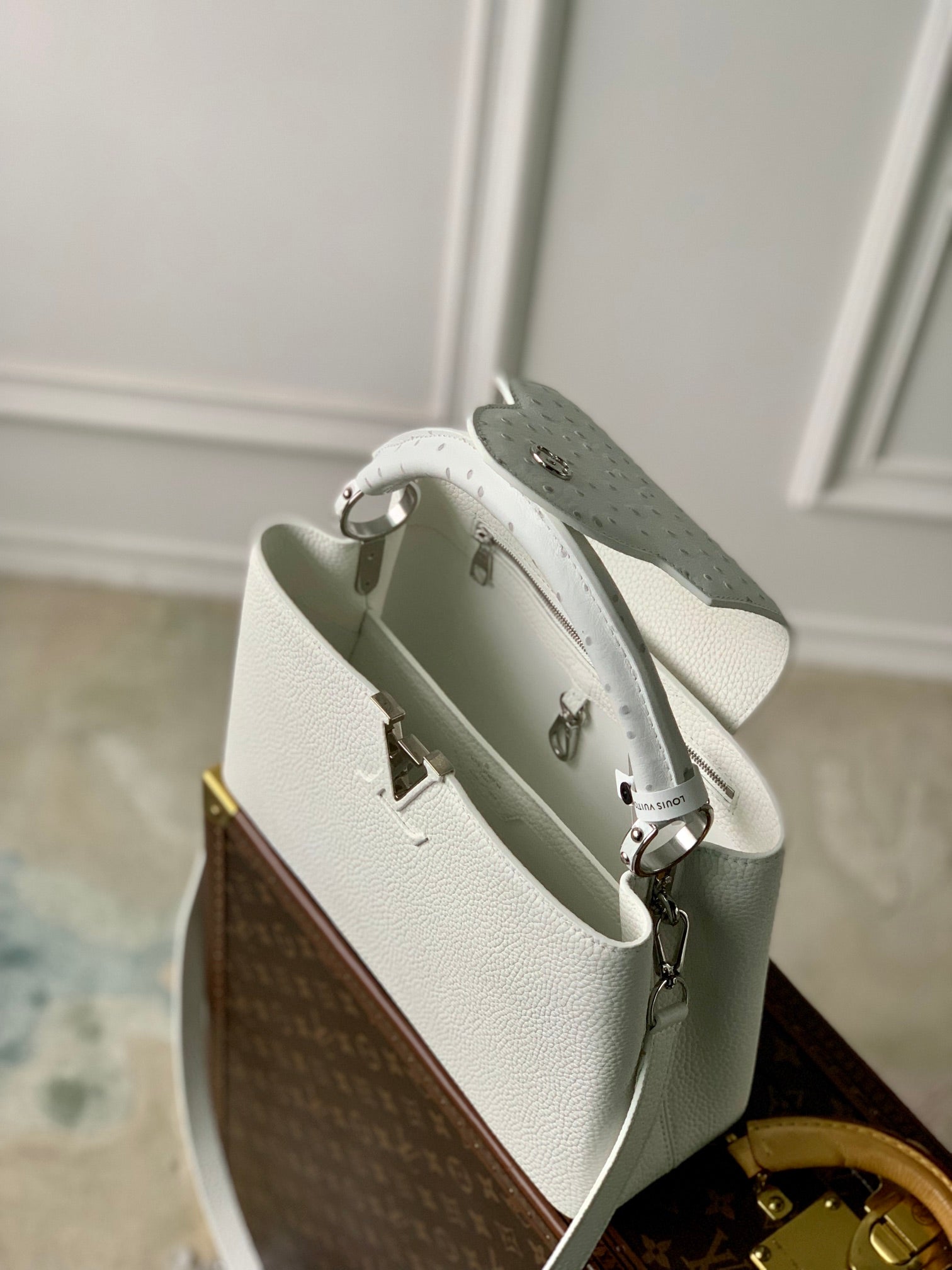 capucines mm 31.5 white taurillon leather silver hardware