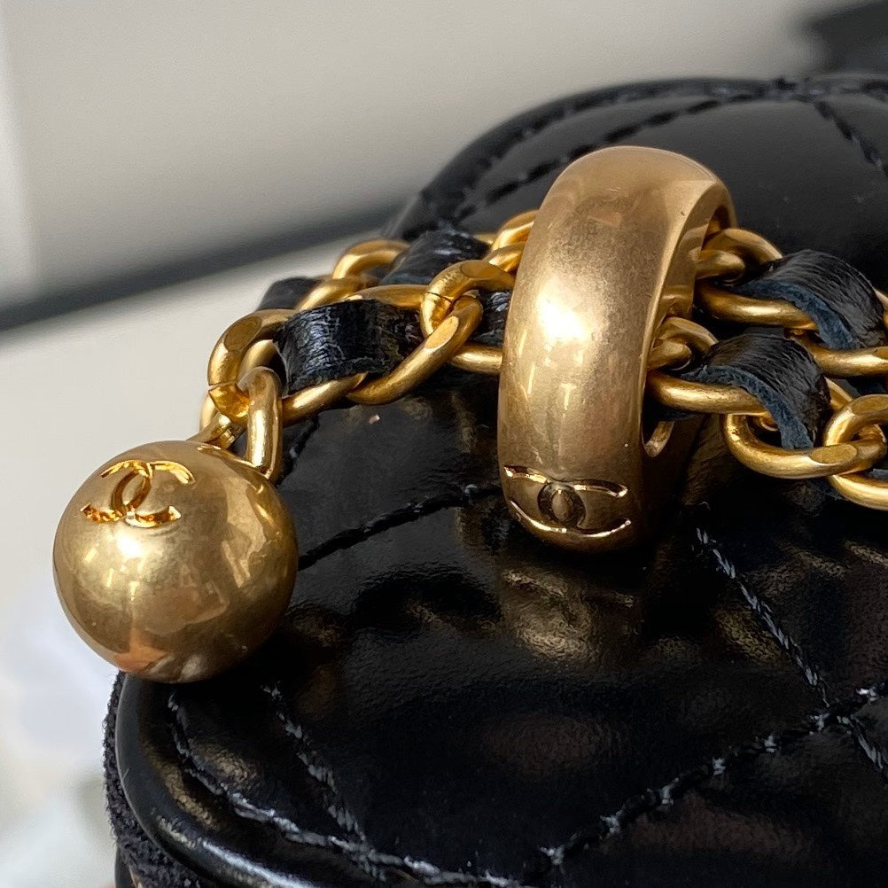 CC VANITY CASE 11 BLACK LAMBSKIN GOLD HARDWARE
