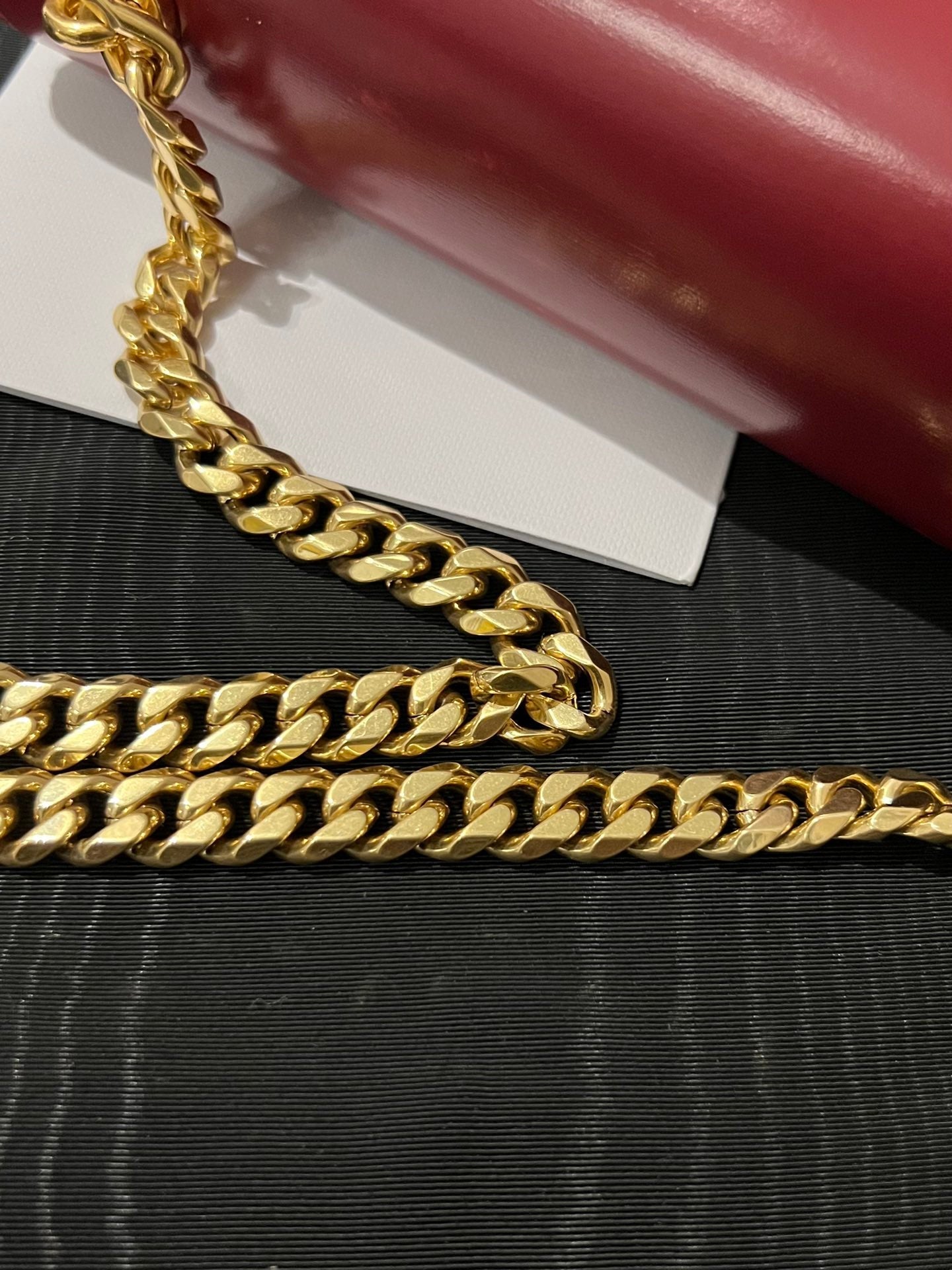 • Color: Red leather, gold hardware