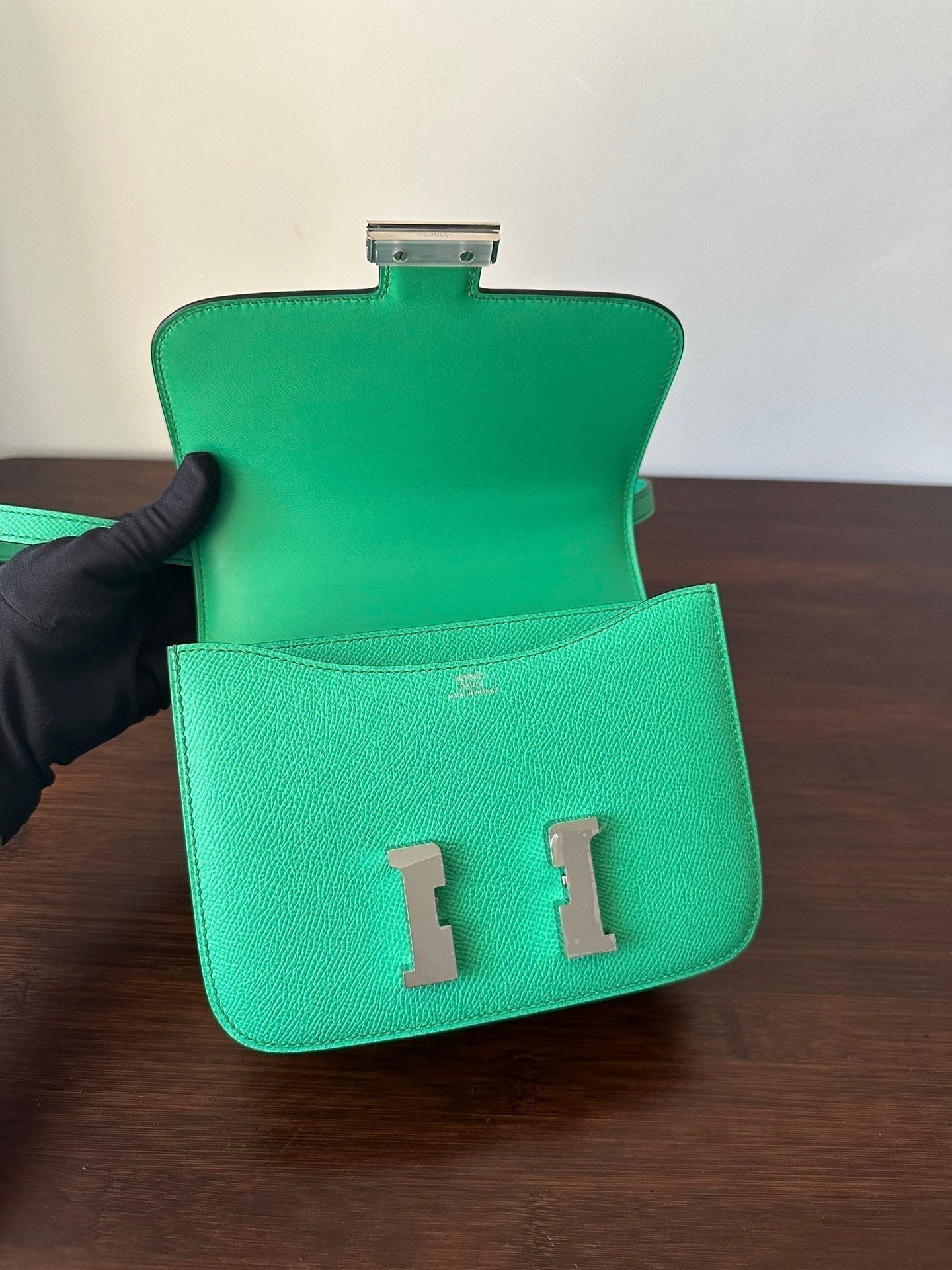 CONSTANCE 18 MINT EPSOM SILVER HARDWARE