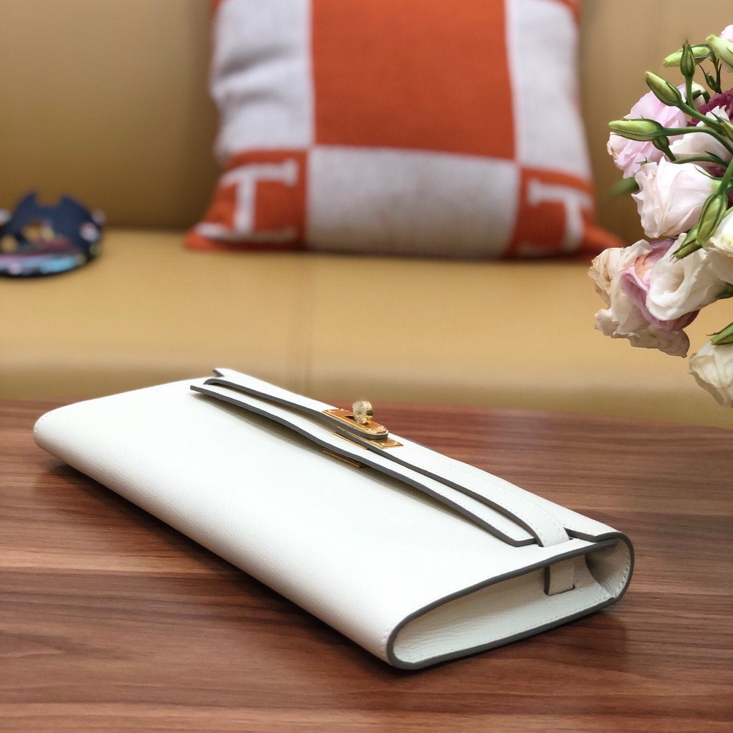 HM Kelly Cut 31cm White Swift Leather Ghw