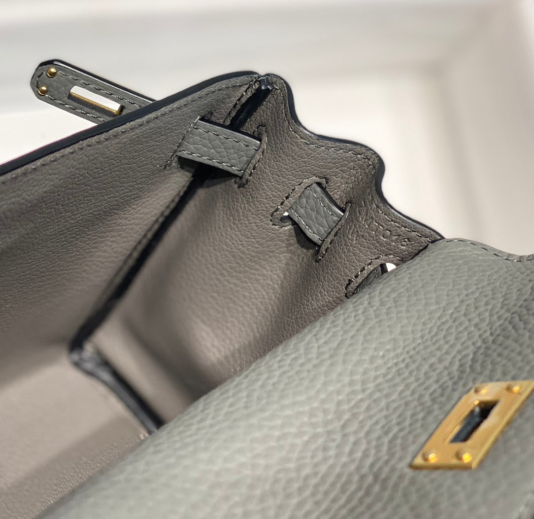 HM Mini Kelly 20cm Gris Meyer Togo Leather Gold Hardware