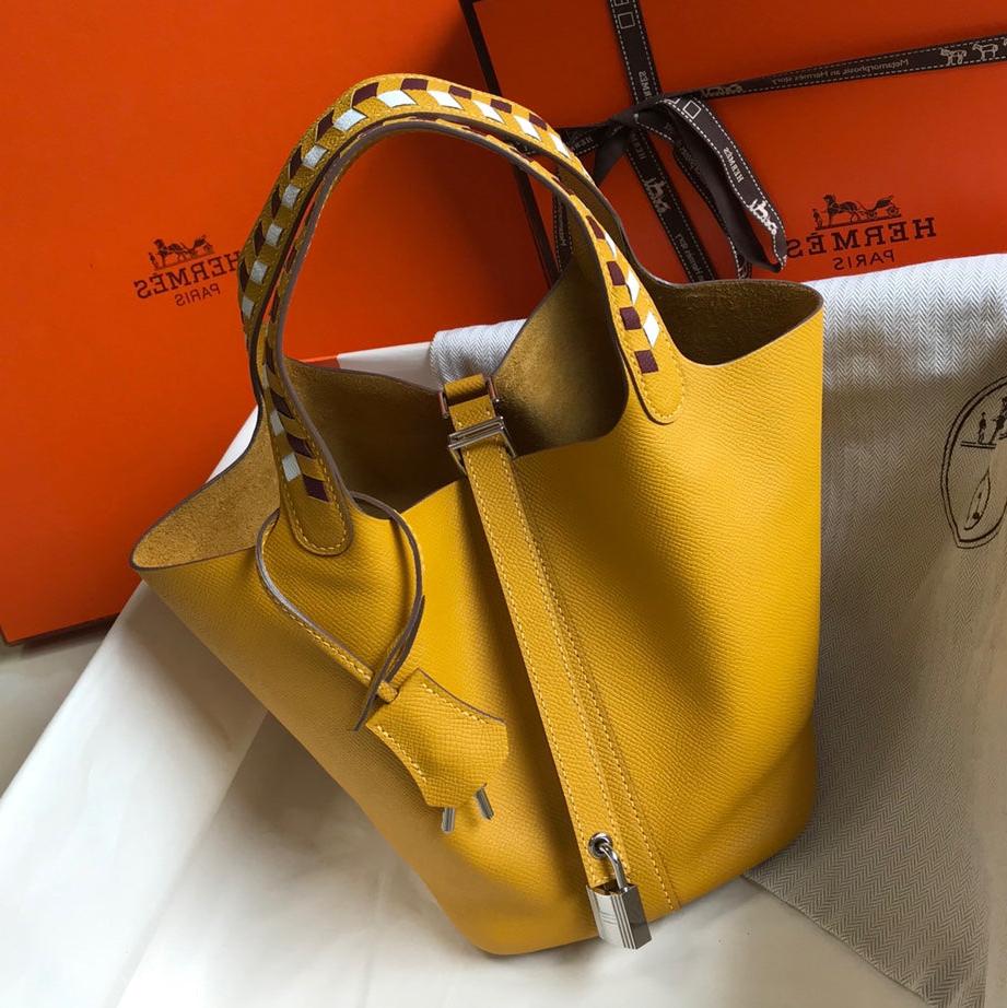 HM PICOTIN LOCK 22 YELLOW EPSOM WITH BRAID STRAP