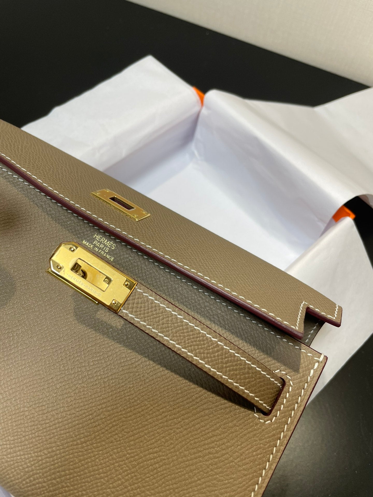 kelly to go wallet 20.5 etoupe epsom gold hardware