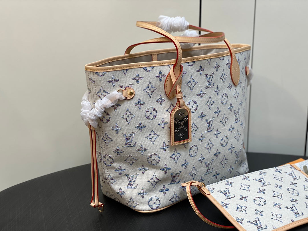 neverfull mm 31 multicolor beige monogram jacquard fabric