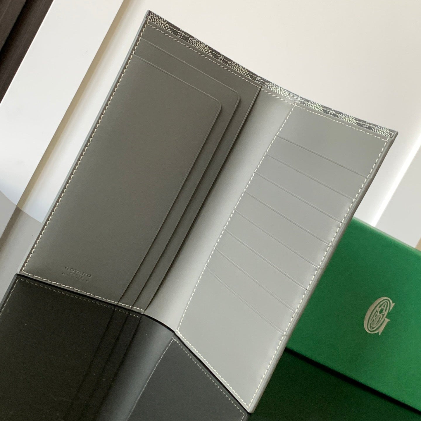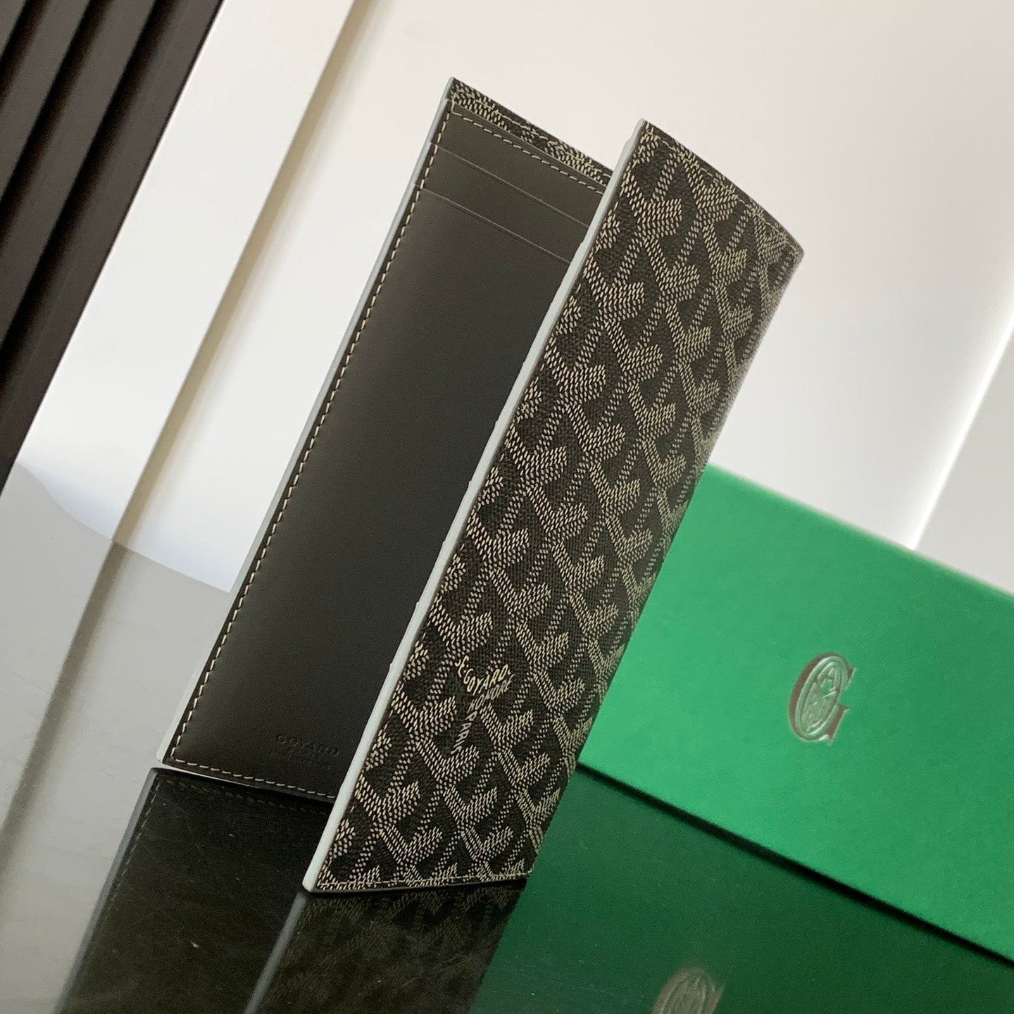 - Material: Goyardine canvas and calfskin