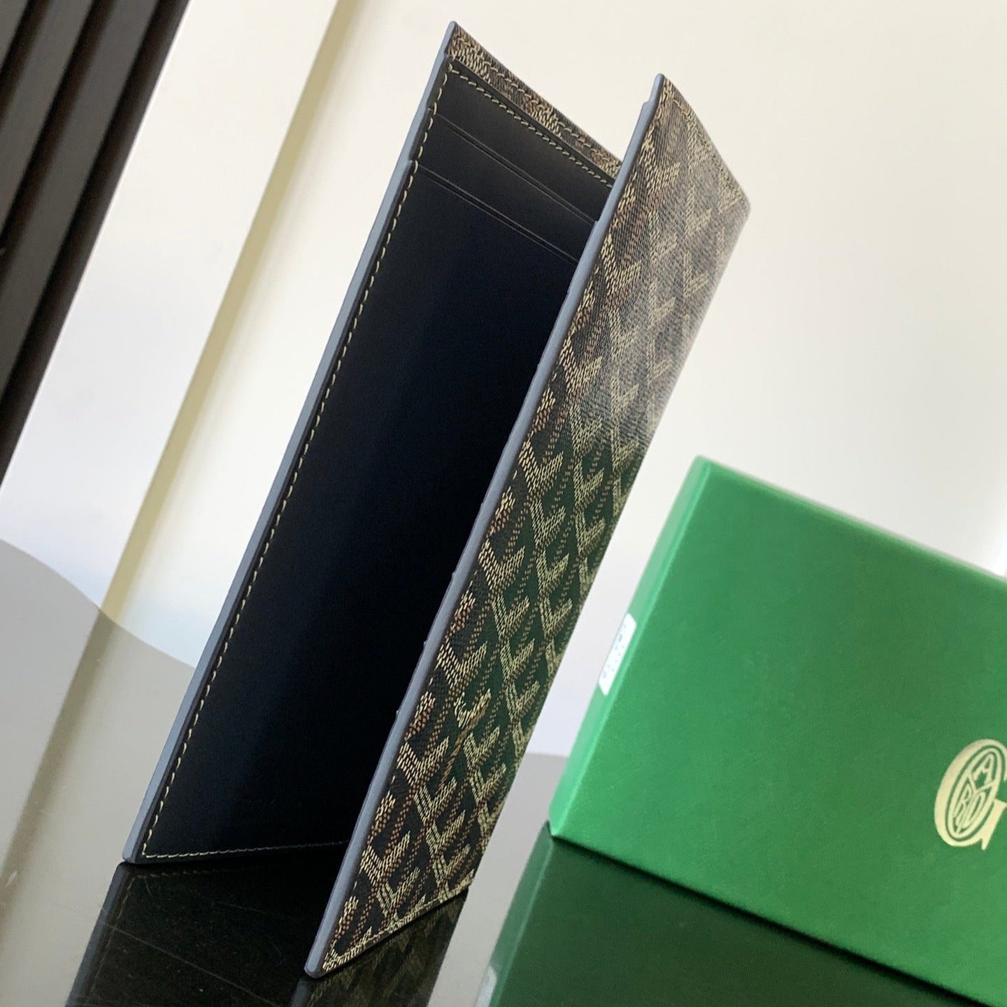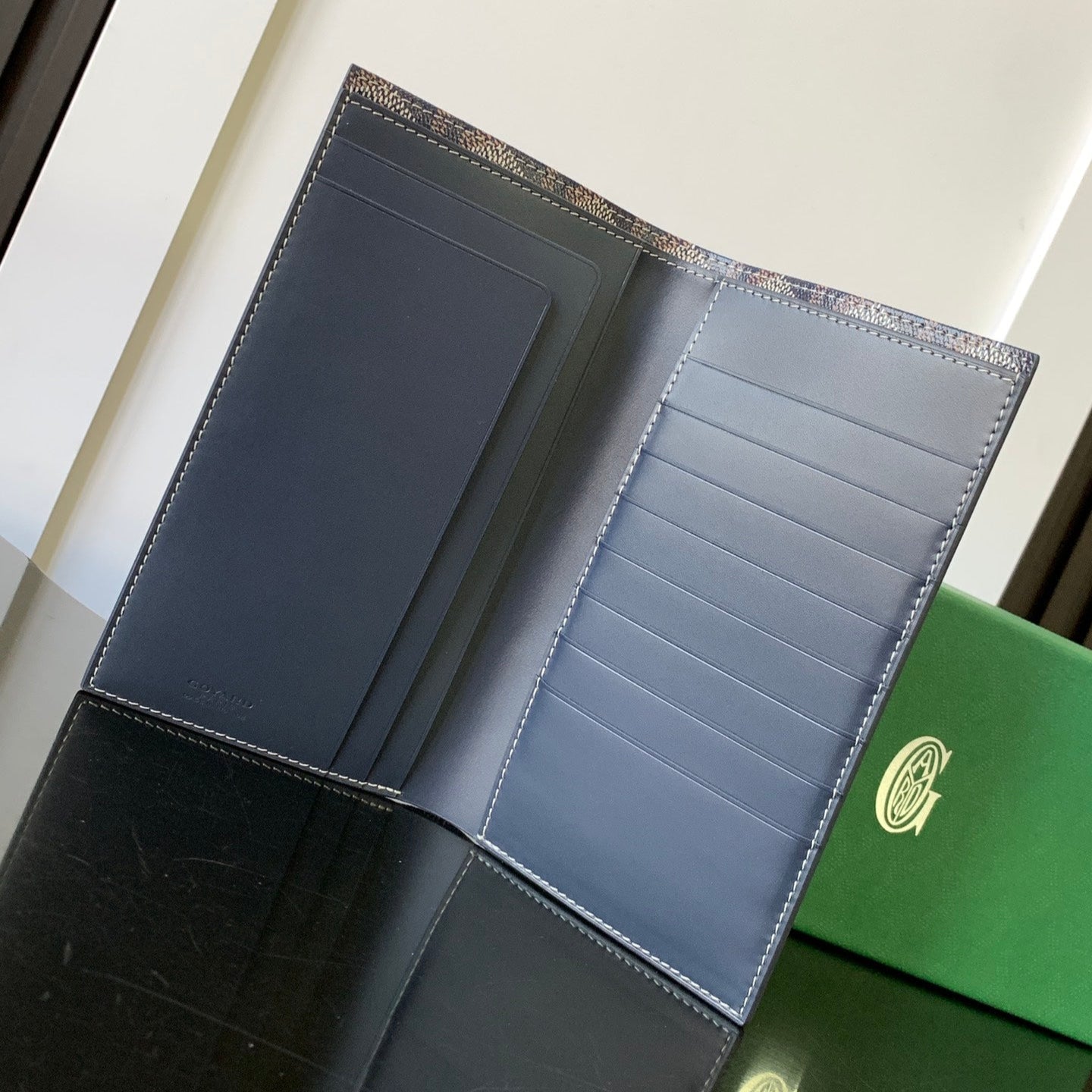 - Material: Goyardine canvas and calfskin